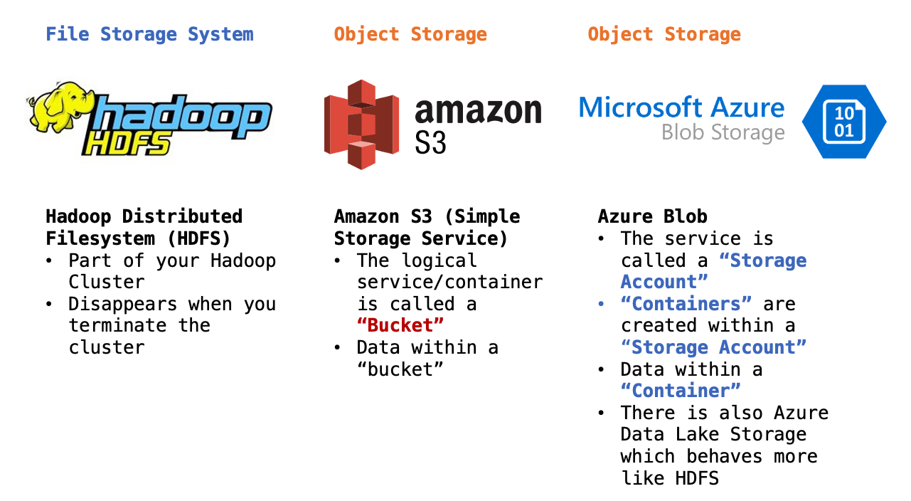 As cloud computing matured, object stores (S3, Azure Blob, GCS) became a popular alternative to HDFS for large-scale storage.