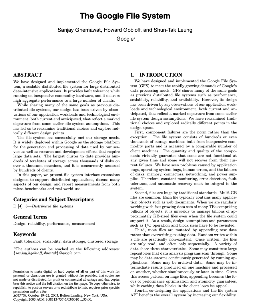 Google’s 2003 paper described a production file system built from commodity hardware, designed around the assumption that: