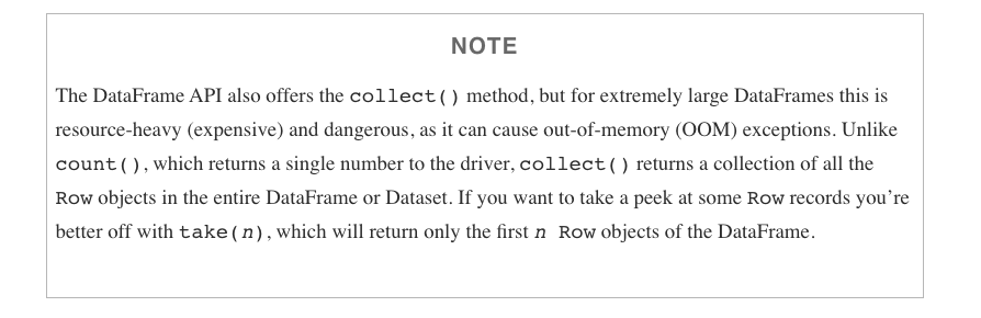 groupBy on a specific columnaggLike RDDs, DataFrames have their own set of actions: