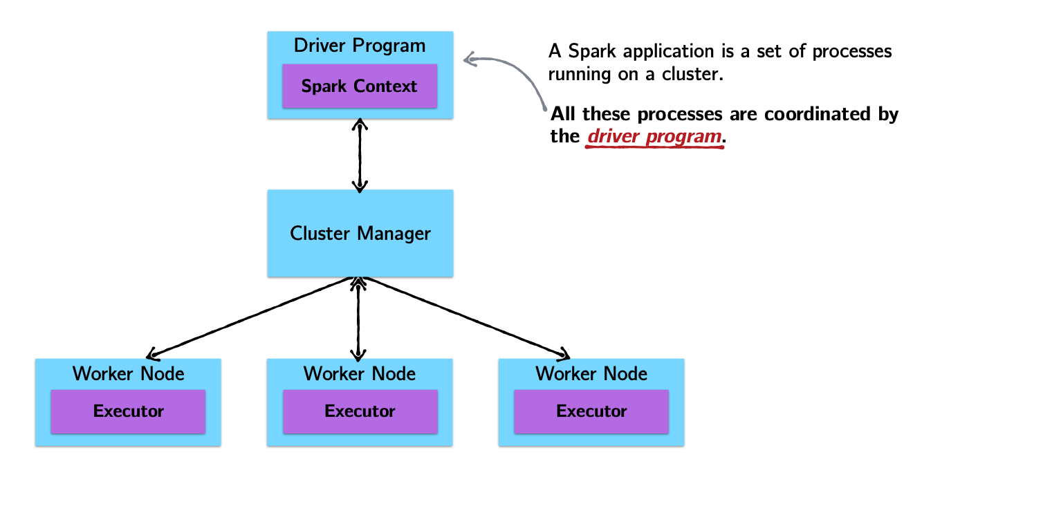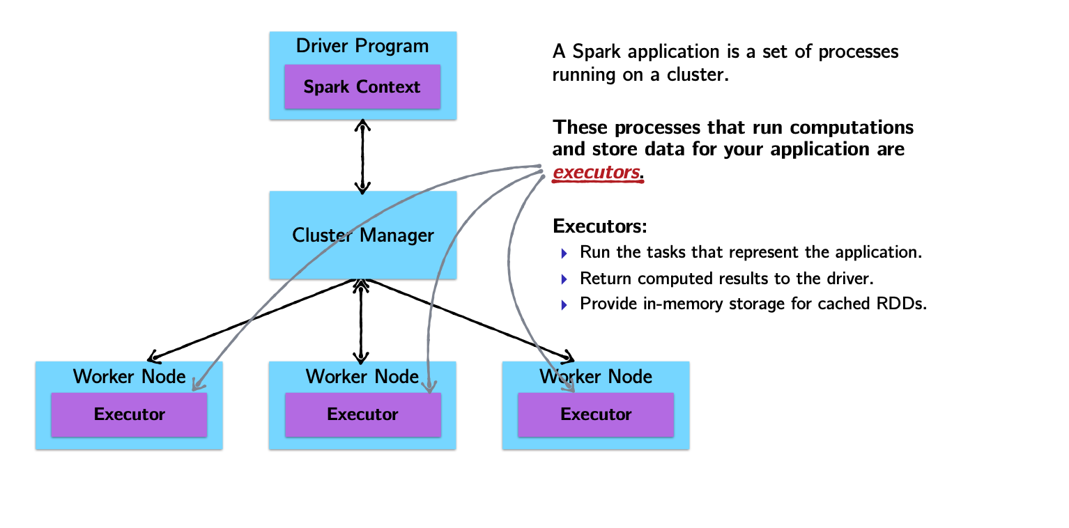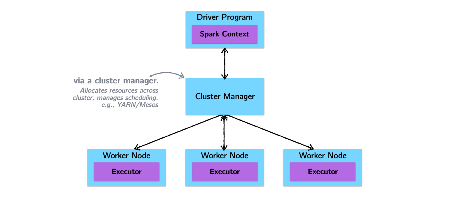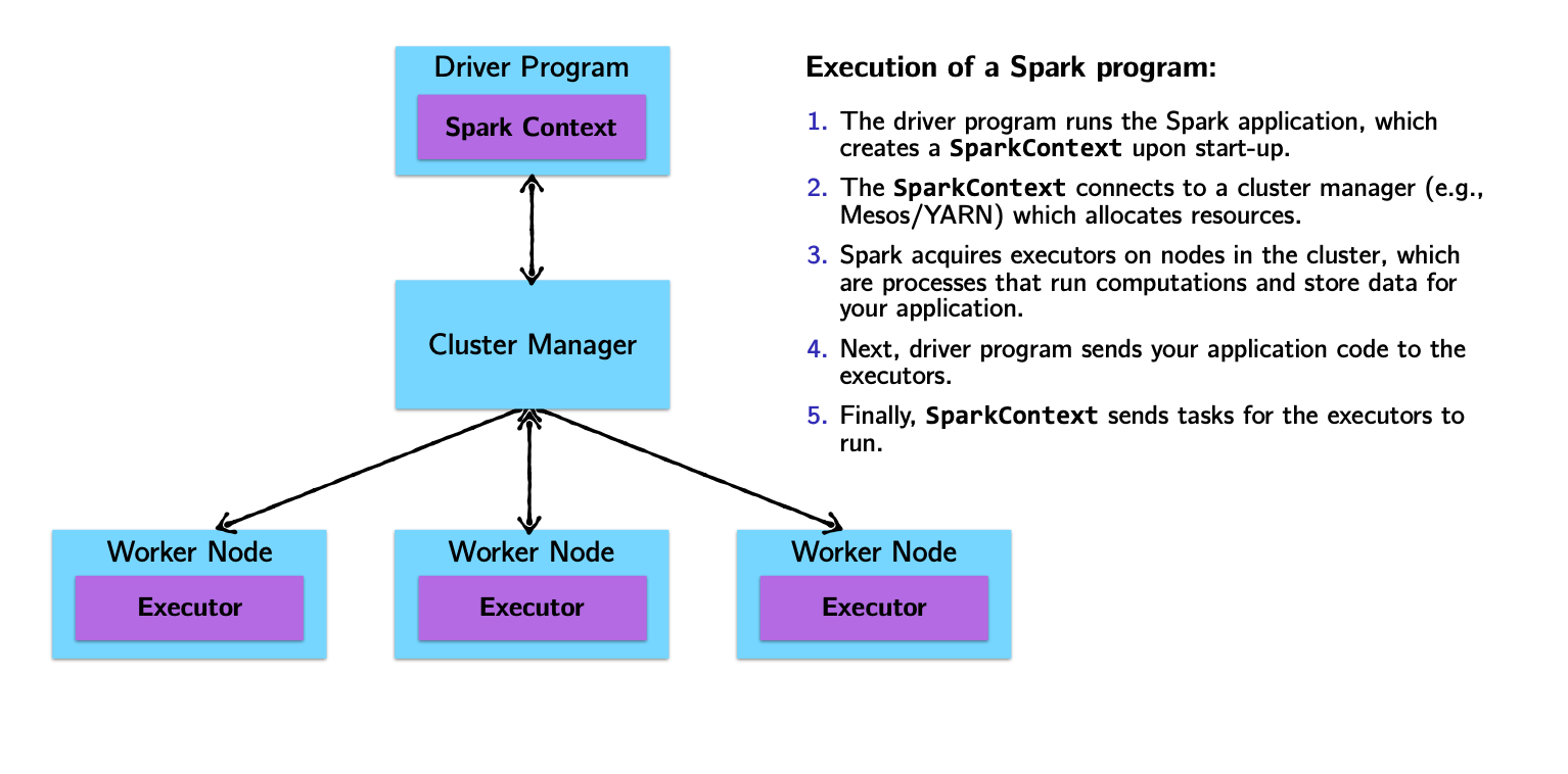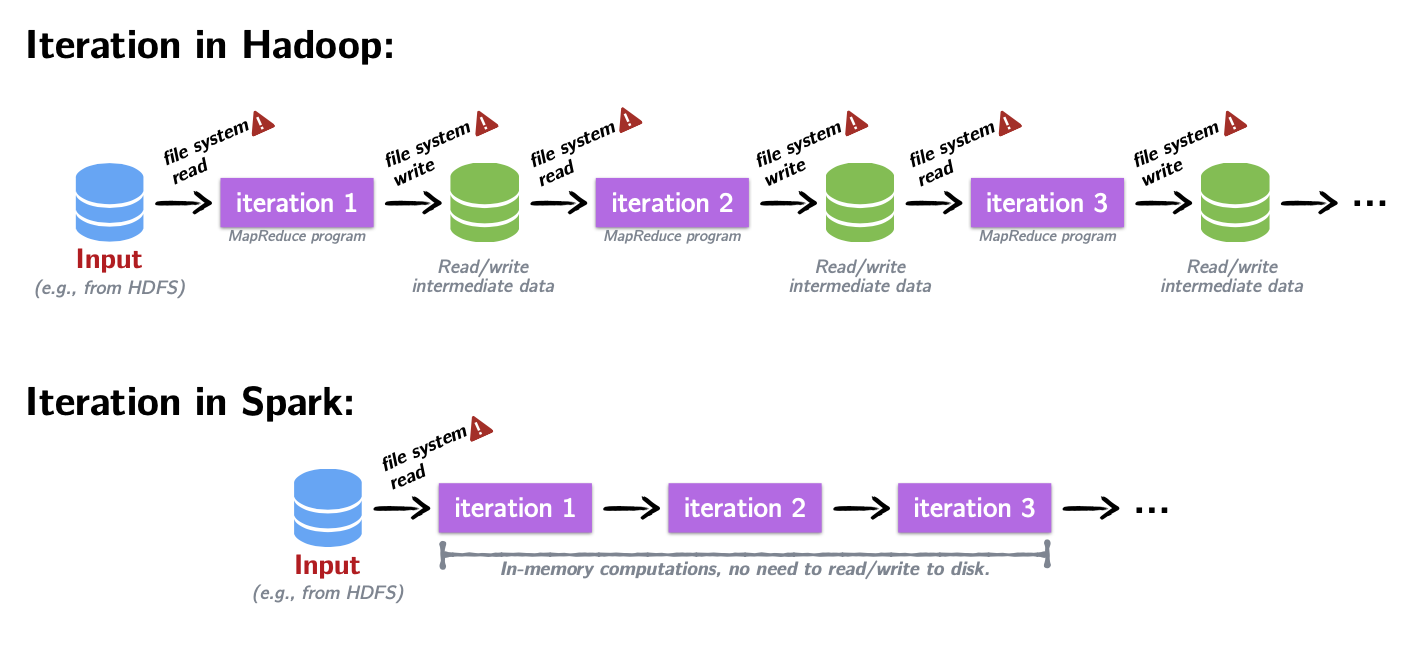 | For iterative processes and interactive use, Hadoop’s mandatory dumping of output to disk is a huge bottleneck. In ML, users rely on iterative processes to train-test-retrain. | Spark uses an in-memory processing paradigm, lowering disk IO substantially. Spark uses DAGs to store transformation details and does not process them until required (lazy). |