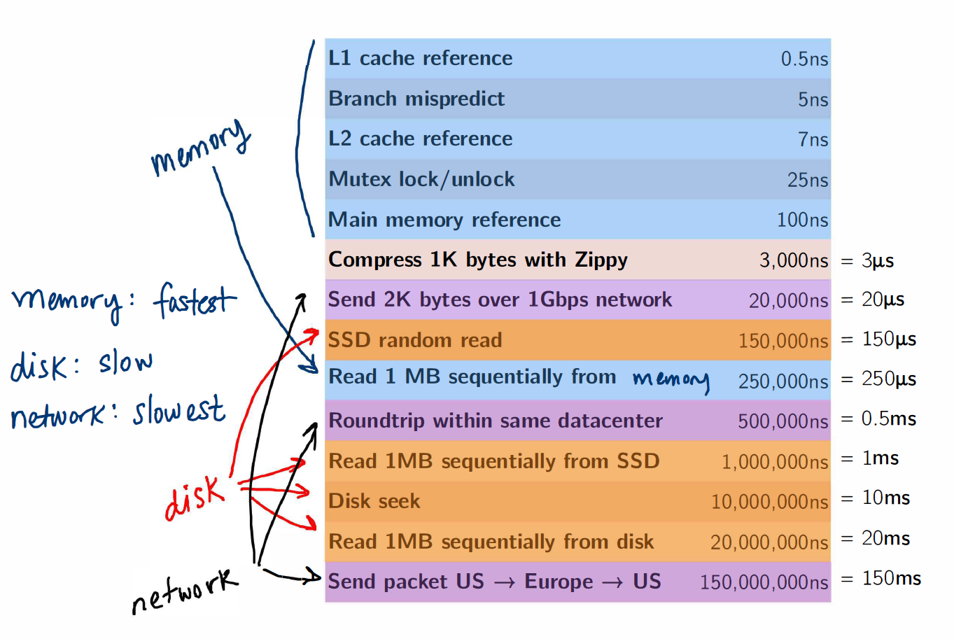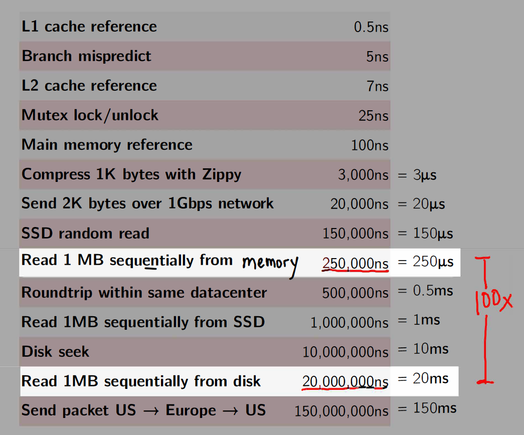 Uses a different strategy for handling latency: it keeps all data immutable and in memory