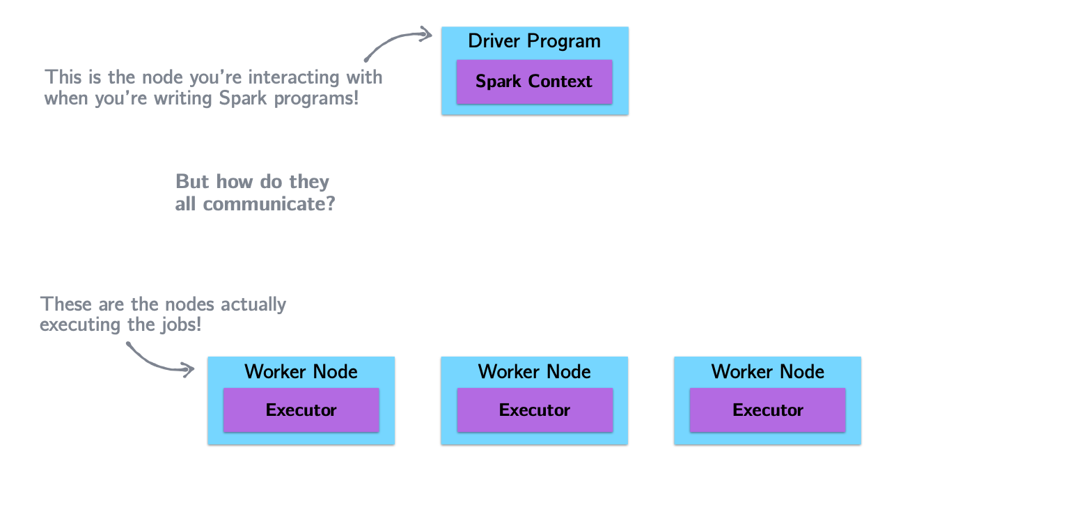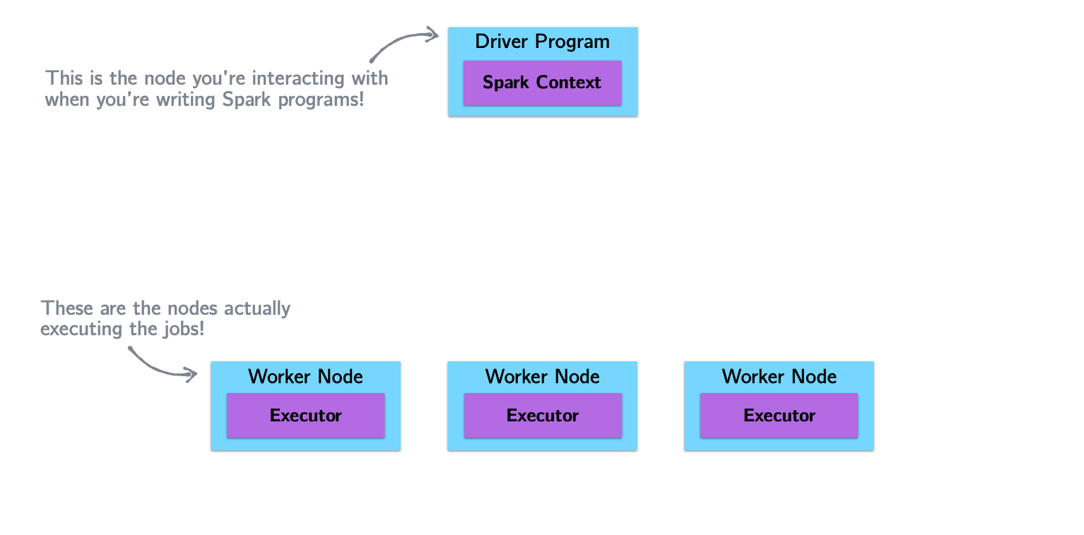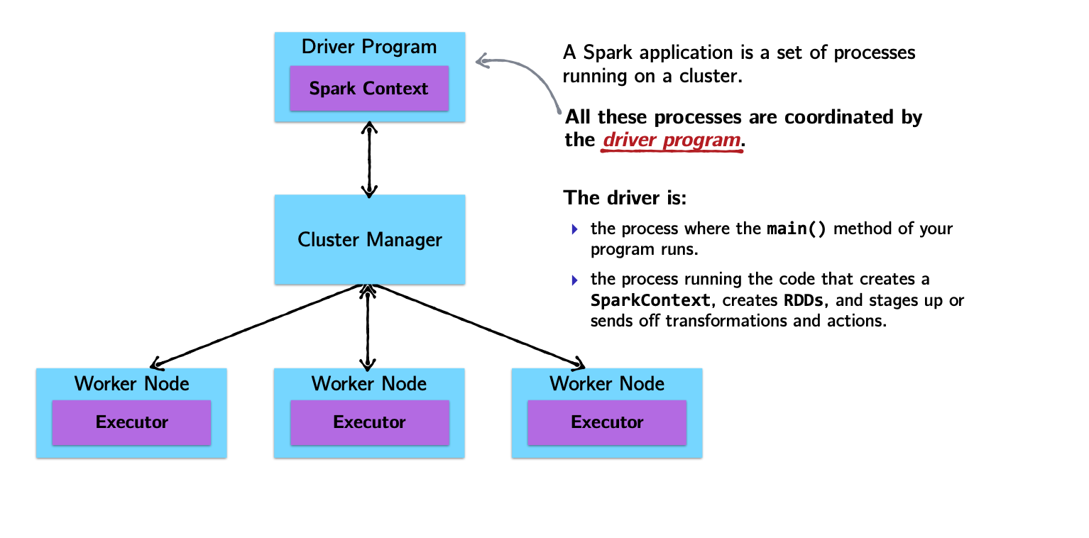 From a SparkContext or SparkSession object: the SparkContext object (renamed SparkSession) is your handle to the Spark cluster. It defines methods to create and populate a new RDD: