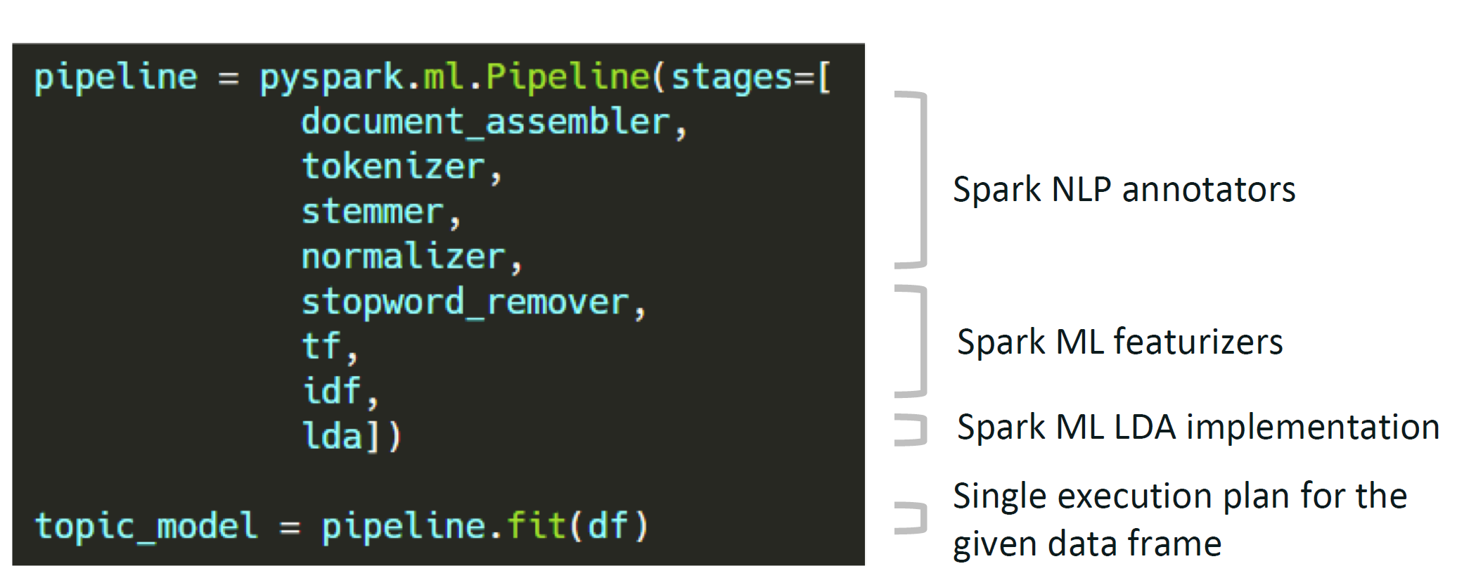 PretrainedPipeline.transform()PretrainedPipeline.annotate()from pyspark.ml import Pipeline