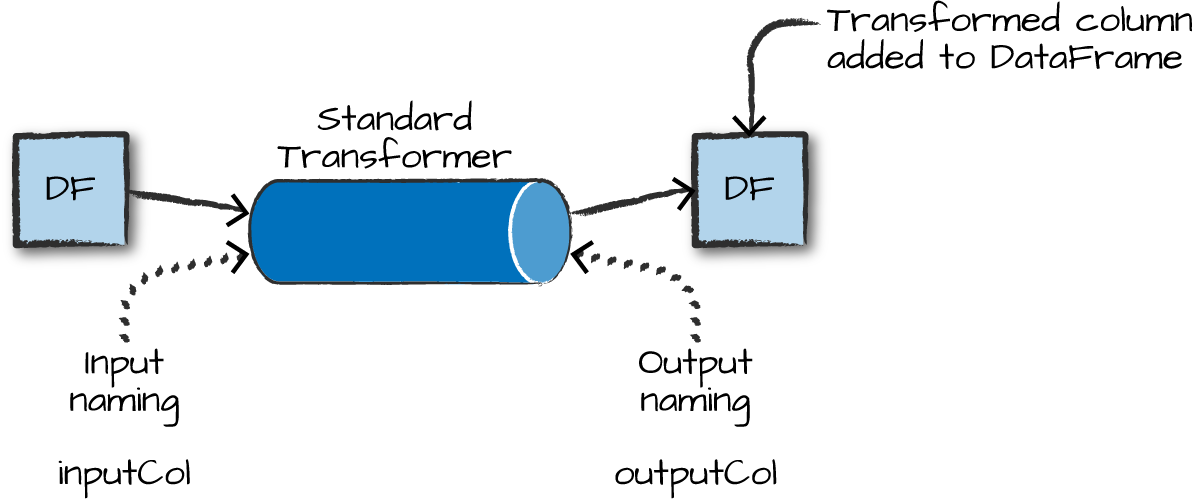 Transformers take DataFrames as input, and return a new DataFrame as output.