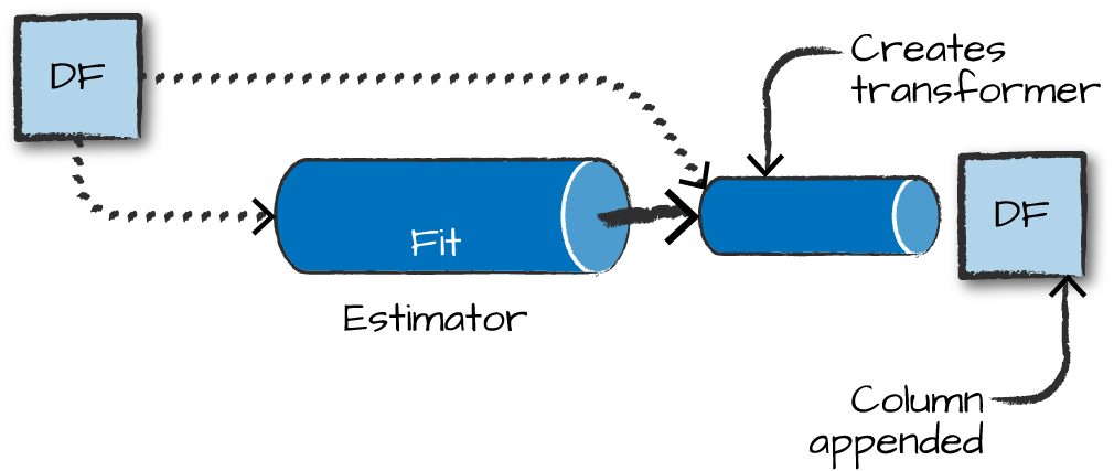 output.select("features", "clicked").show(truncate=False)Estimators learn (or “fit”) parameters from your DataFrame via the .fit() method, and return a model which is a Transformer.